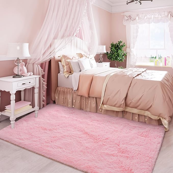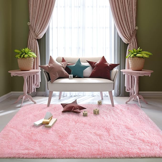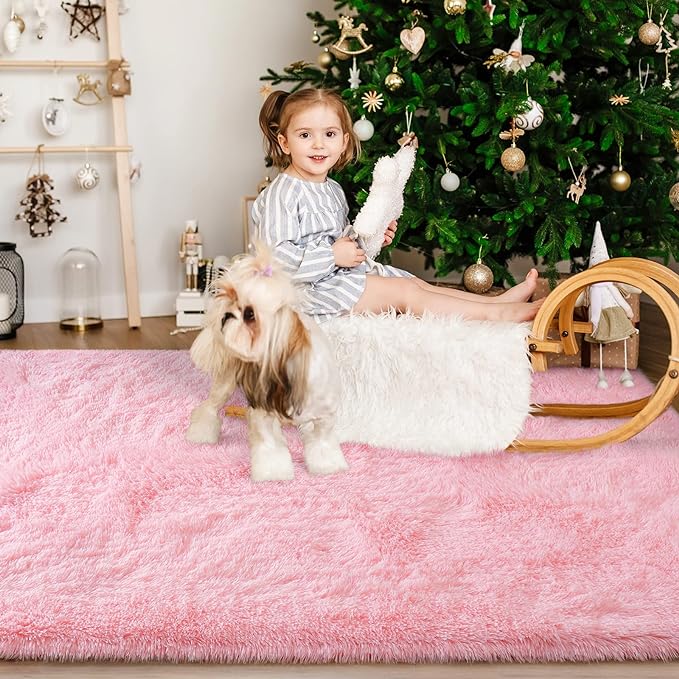 Super Soft Fluffy Shaggy Rugs 3x5 Feet for Living Room Bedroom, Fuzzy Plush Area Rugs for Girls Kids Room Nursery Home Decor, Furry Dorm Rug Cute Non-Slip Indoor Floor Carpet, Baby Pink