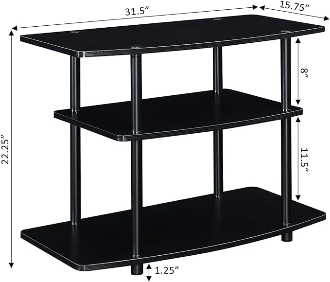 Convenience Concepts Designs2Go 3 Tier TV Stand, 31.5", Black/Black