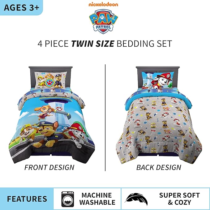 Franco Kids Bedding Super Soft Comforter and Sheet Set, 4 Piece Twin Size, Paw Patrol (Prints may vary)