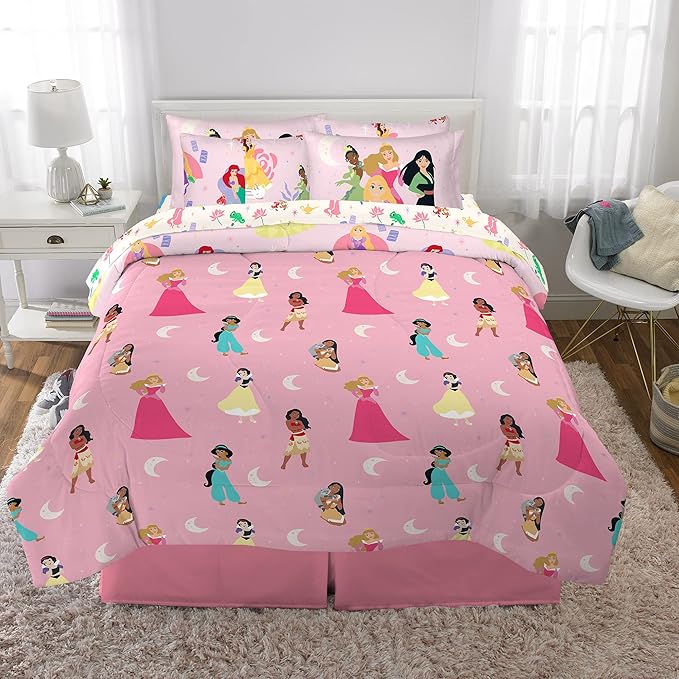 About This 100% Microfiber DISNEY PRINCESS DESIGN: Give your little princess the royal bedtime treatment with pretty-in-pink bedding featuring her...