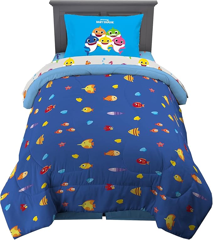 Franco Kids Bedding Super Soft Comforter and Sheet Set, 4 Piece Twin Size, Baby Shark
