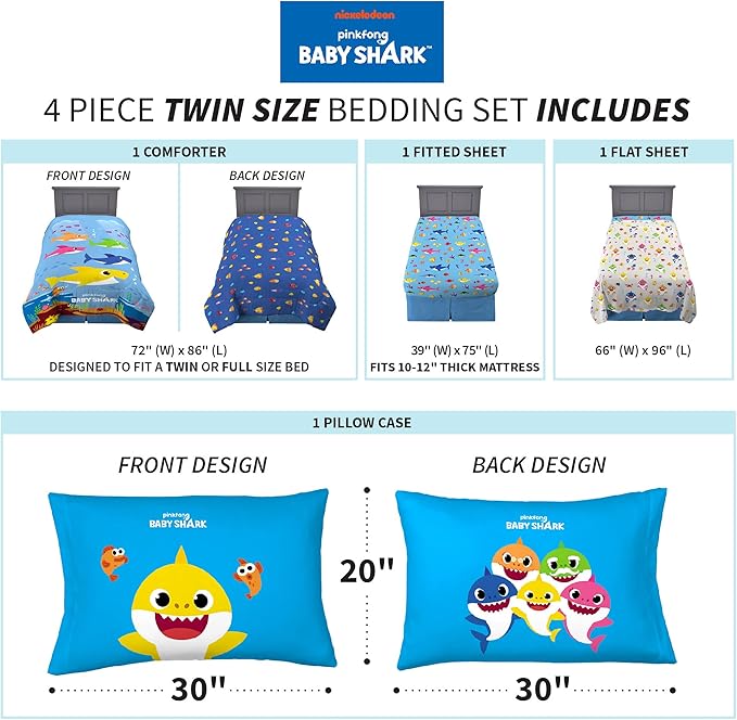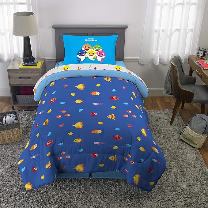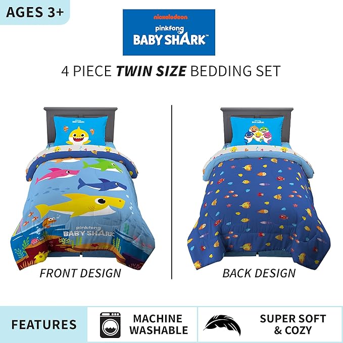 About This 100% Microfiber BABY SHARK DESIGN: Singing sharks unite on this cute and colorful Baby Shark bedding set. Featuring...