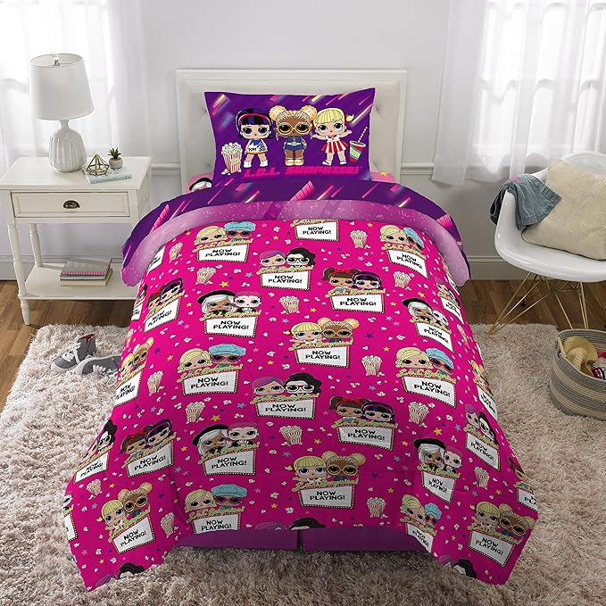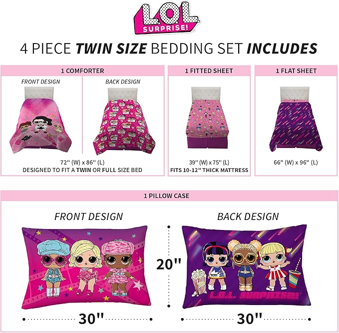 Franco Kids Bedding Super Soft Comforter and Sheet Set, 4 Piece Twin Size, LOL Surprise