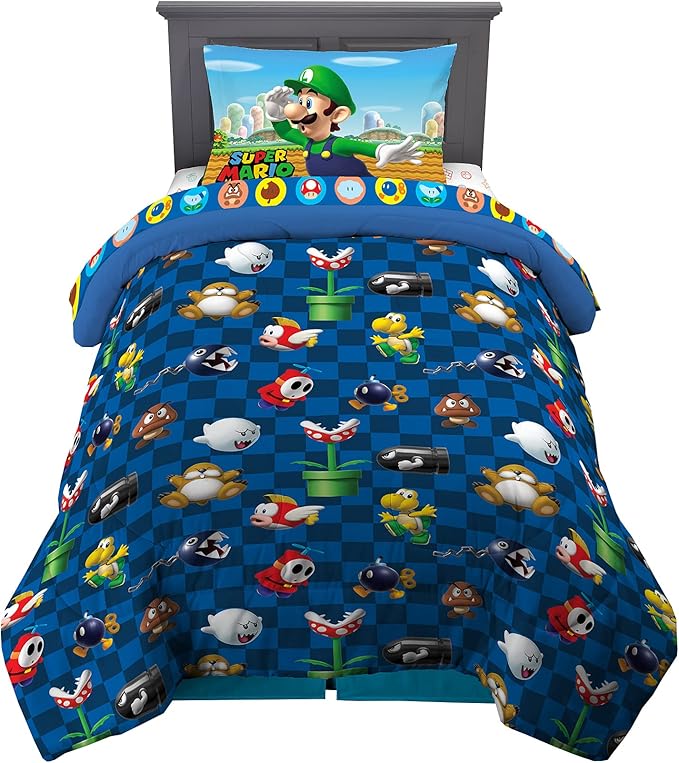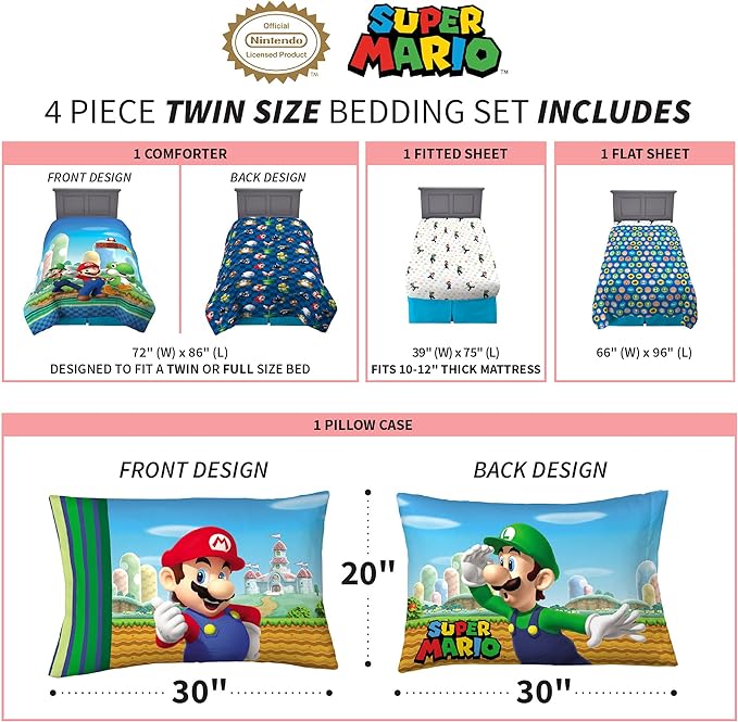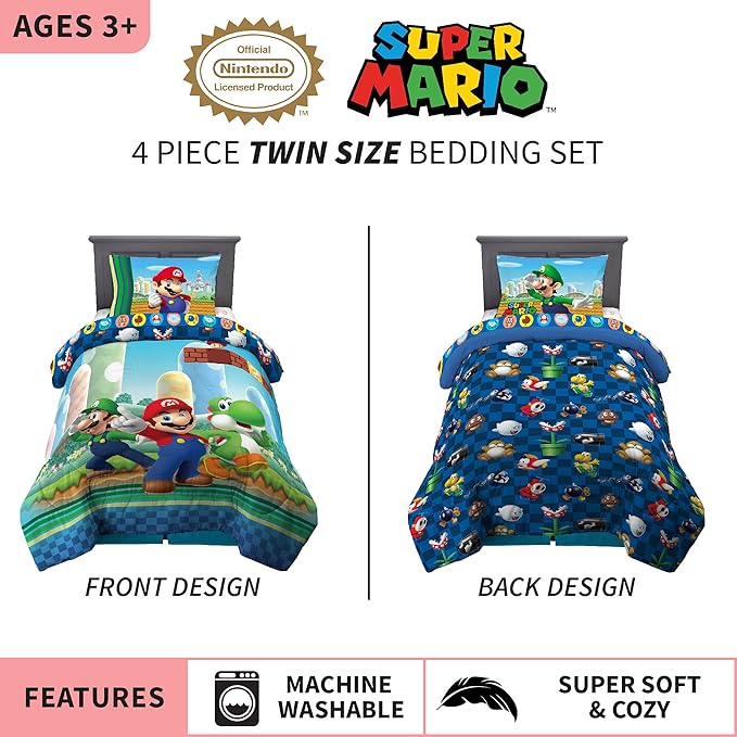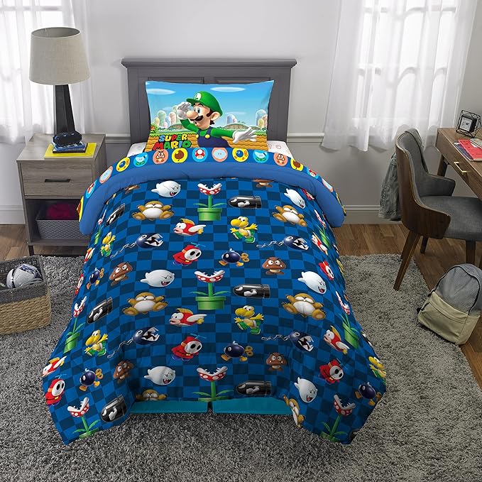 About This 100% Microfiber SUPER MARIO DESIGN: Level up his bedroom décor with colorful Super Mario bedding. Featuring Mario, Luigi,...