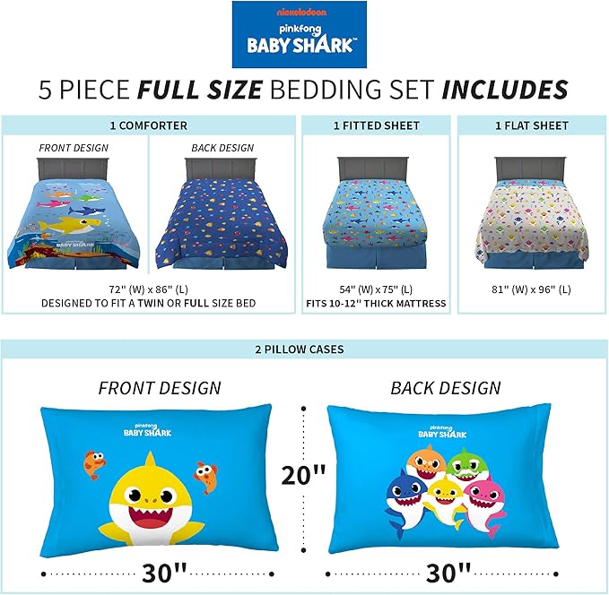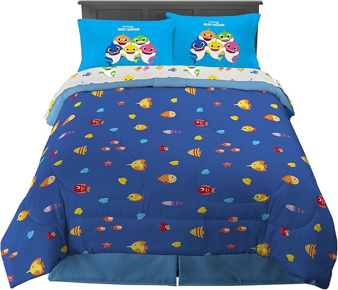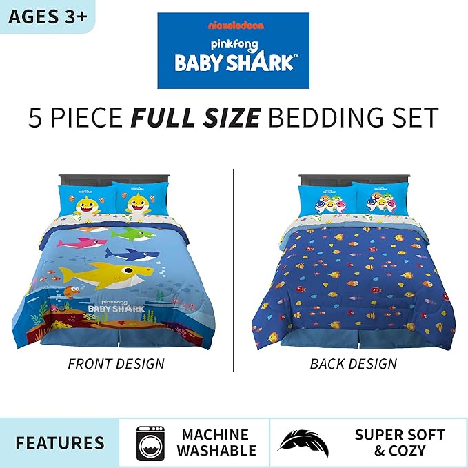 Franco Kids Bedding Super Soft Comforter and Sheet Set, 5 Piece Full Size, Baby Shark