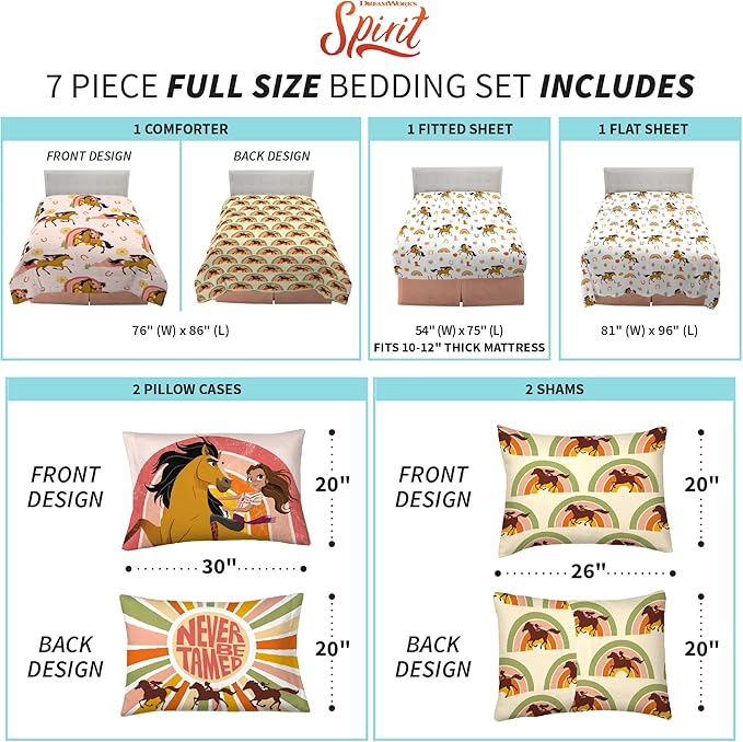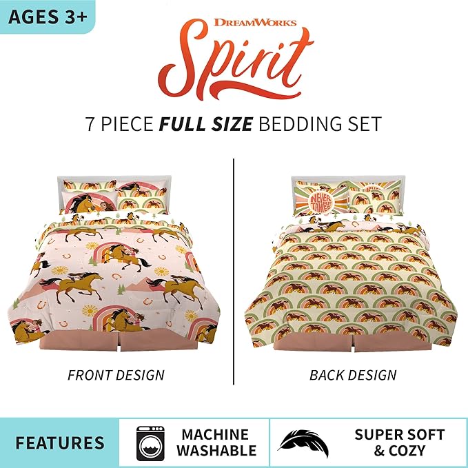 Franco Kids Bedding Super Soft Comforter and Sheet Set with Sham, 7 Piece Full Size, Spirit Riding Free