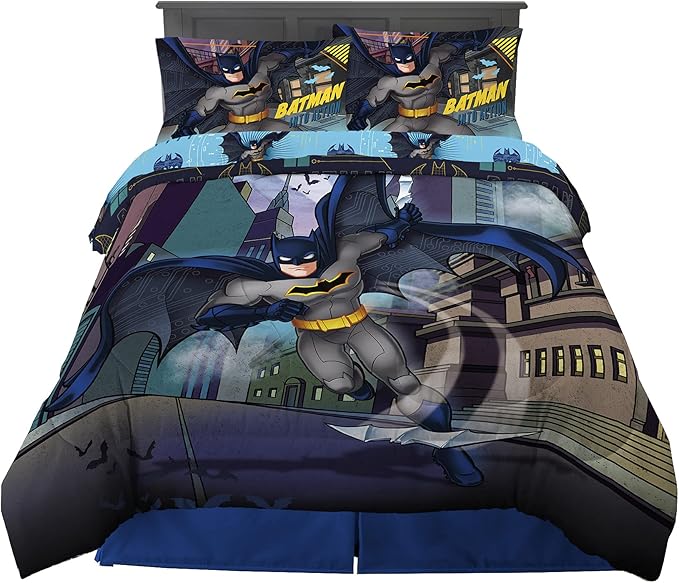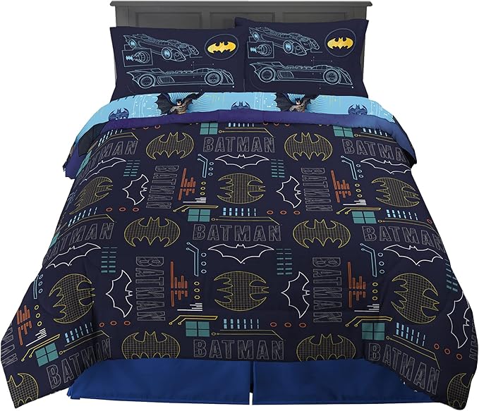 Franco Kids Bedding Super Soft Comforter and Sheet Set, 5 Piece Full Size, Batman