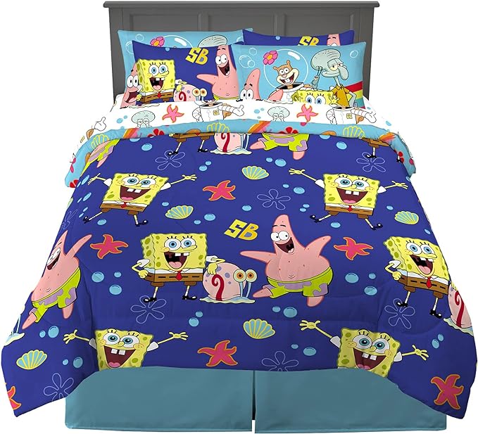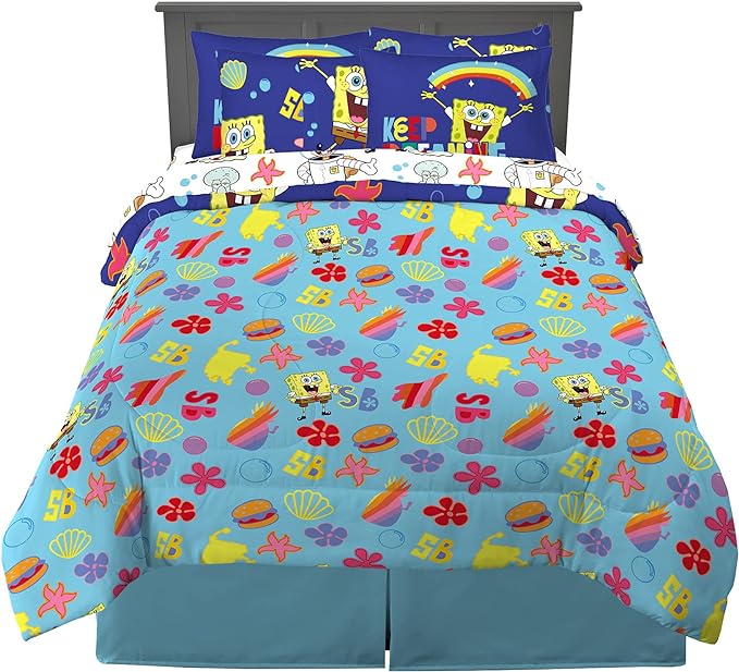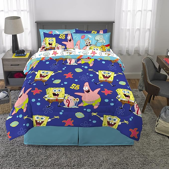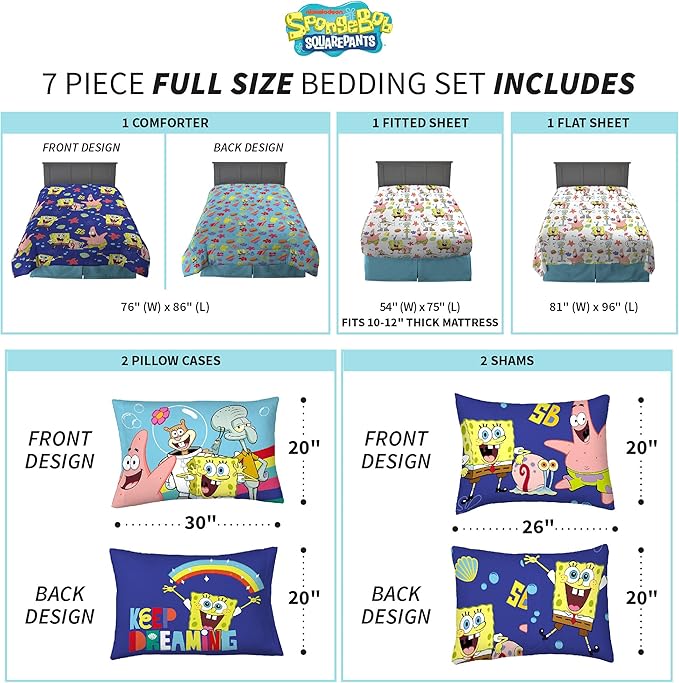 Franco Kids Bedding Super Soft Comforter and Sheet Set with Sham, 7 Piece Full Size, Spongebob Squarepants