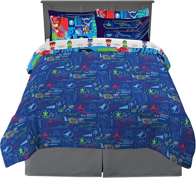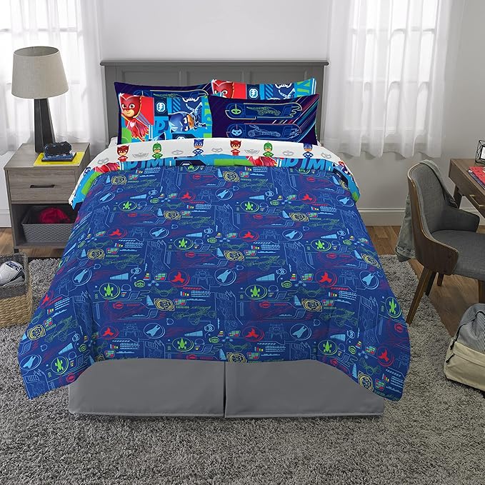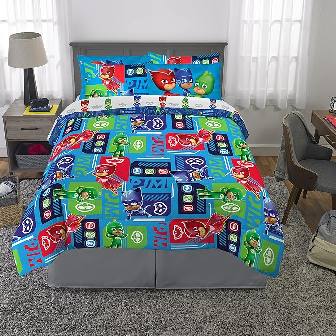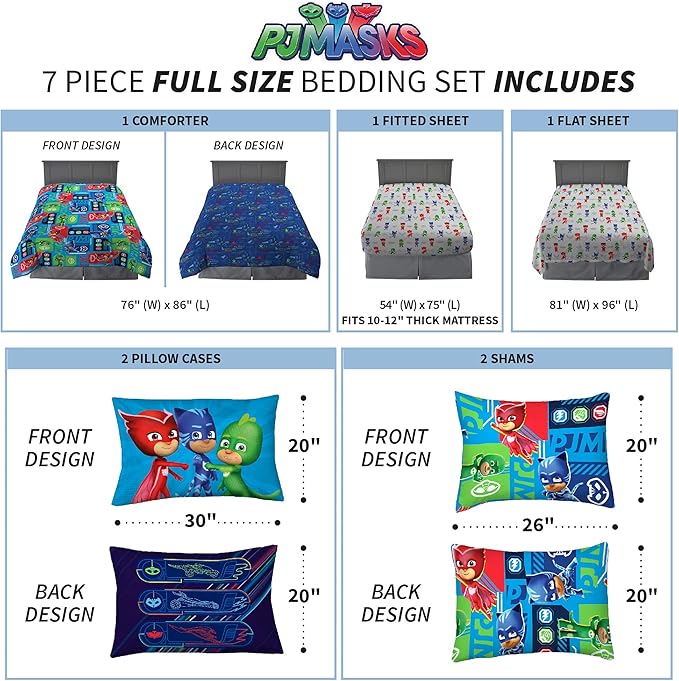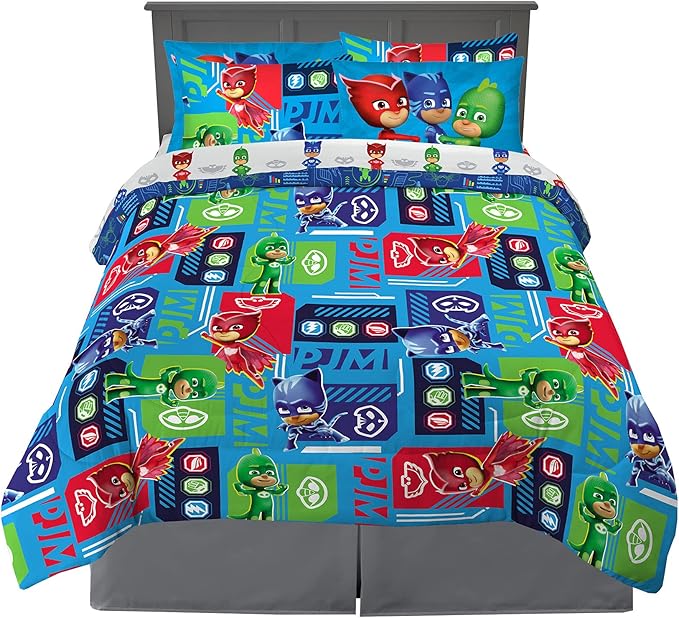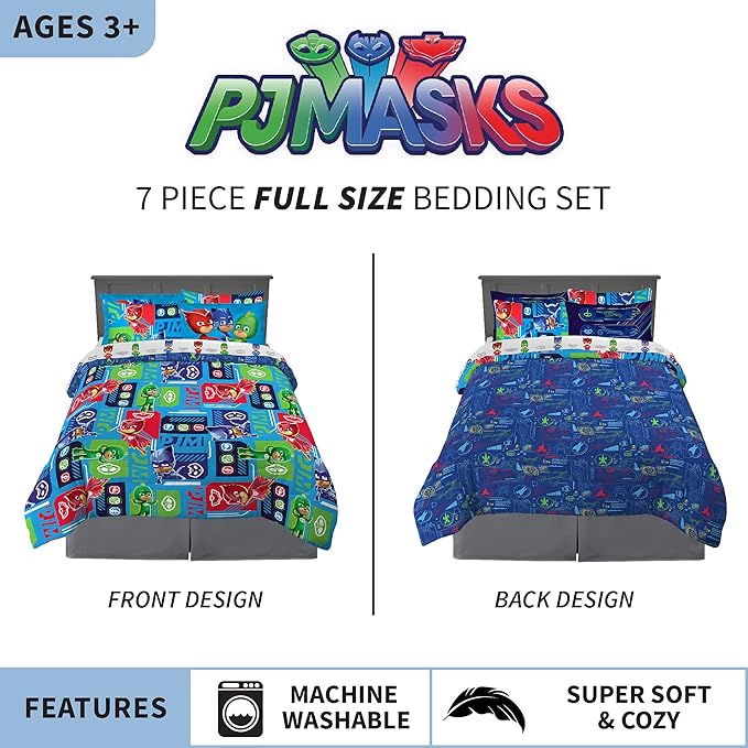 Franco Kids Bedding Super Soft Comforter and Sheet Set with Sham, 7 Piece Full Size, PJ Masks