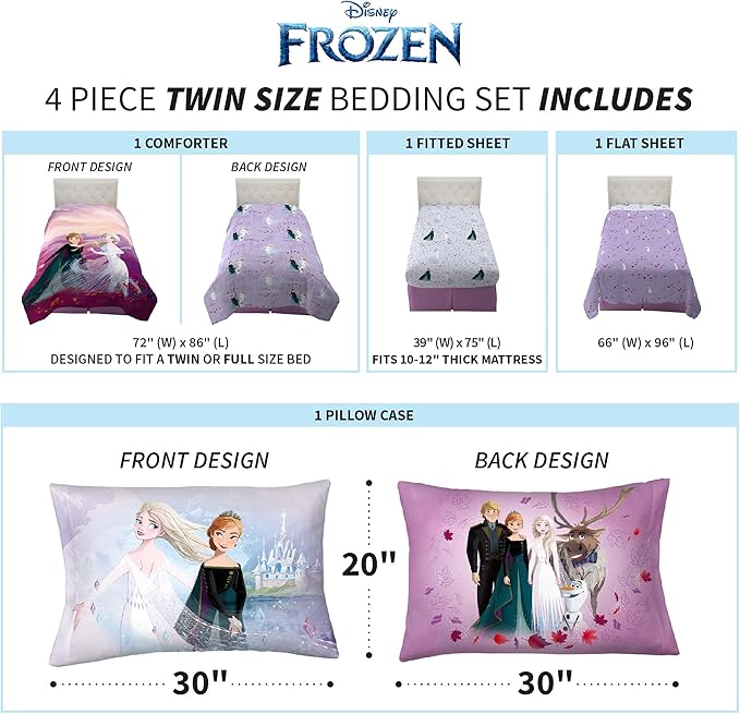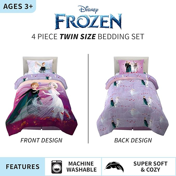 About This 100% Microfiber DISNEY FROZEN 2 DESIGN (PRINTS MAY VARY!): This bedding features Anna, Elsa, Kristoff, Sven and Olaf...