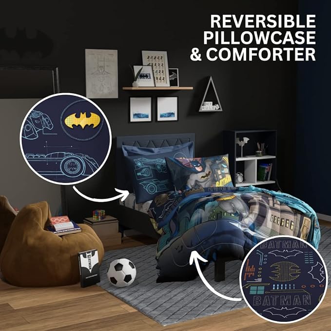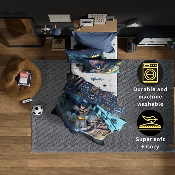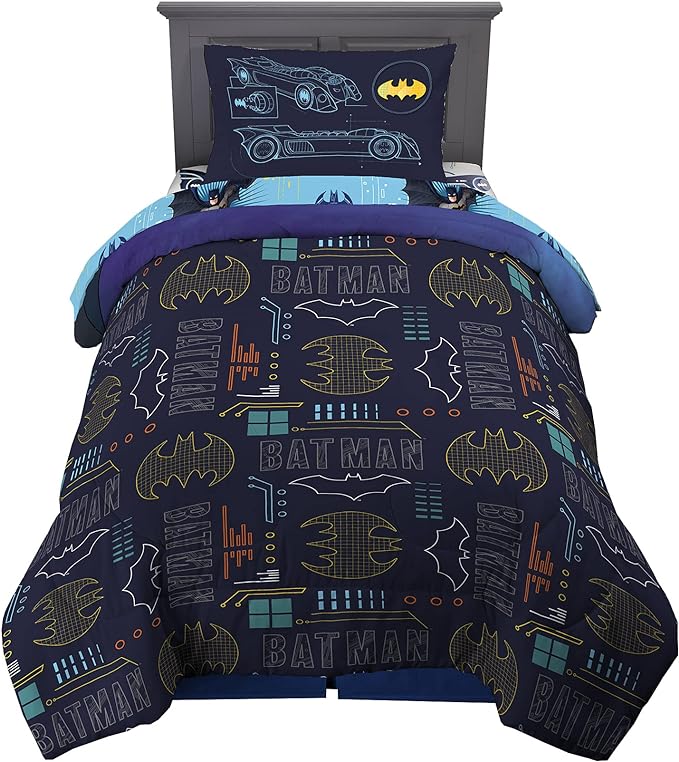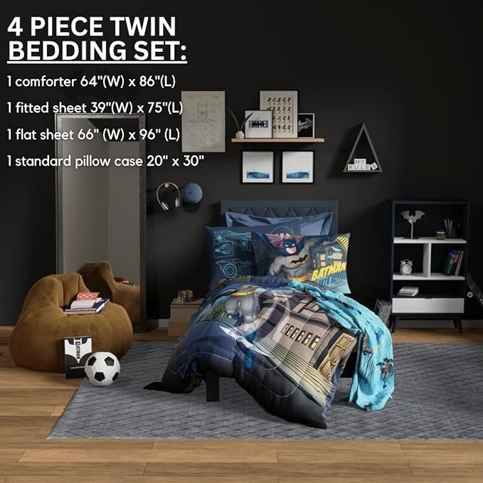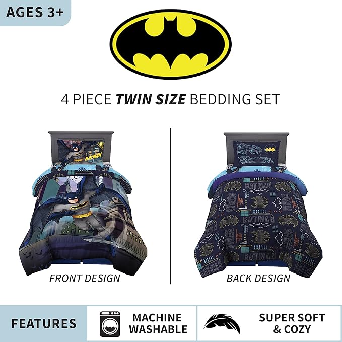Franco Kids Bedding Super Soft Comforter and Sheet Set, 4 Piece Twin Size, Batman