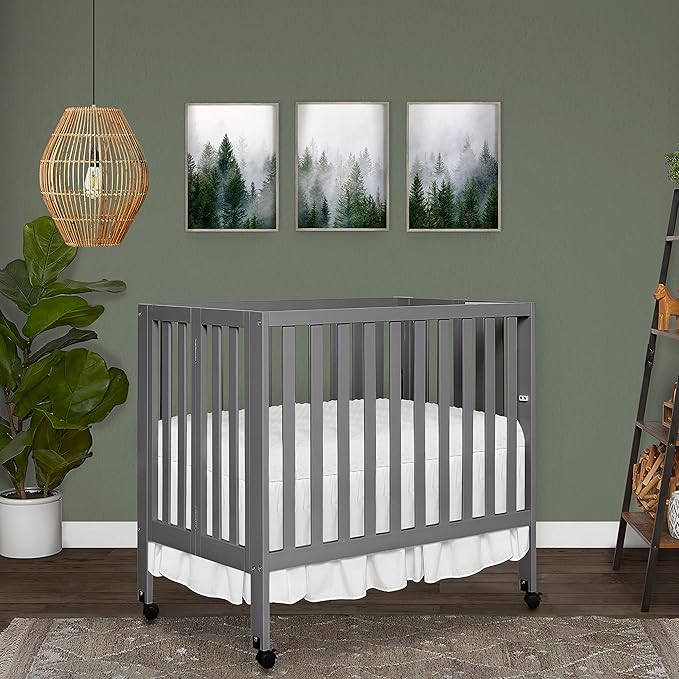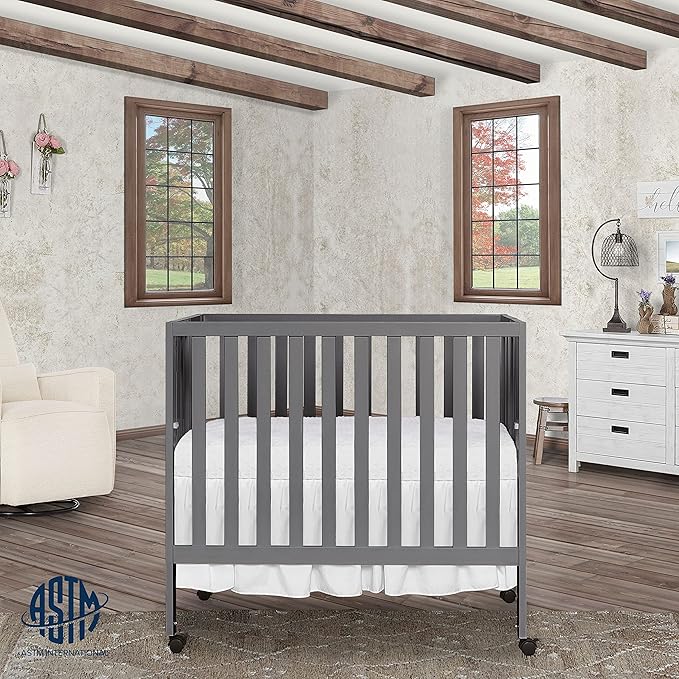 Jett Non-Full Size Folding Convertible Crib, Lightweight Portable Crib, Three Adjustable Mattress Height Settings, Easy to Fold Travel Crib, 1.5” Mattress Pad Included