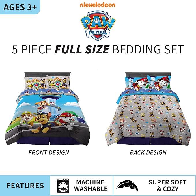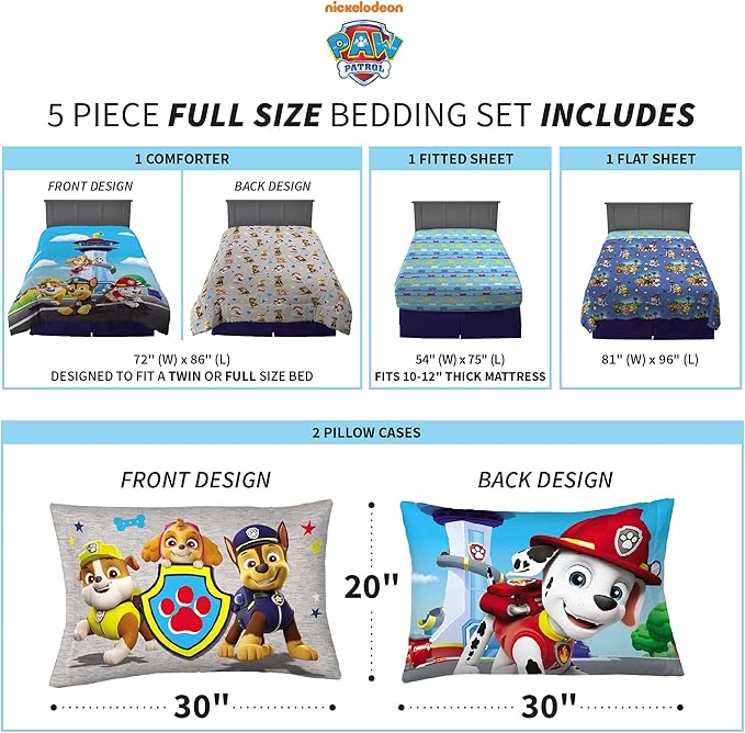 Franco Paw Patrol Kids Bedding Super Soft Comforter And Sheet Set, 5 Piece Full Size, (Official) Nickelodeon, 39 x 75 Inch