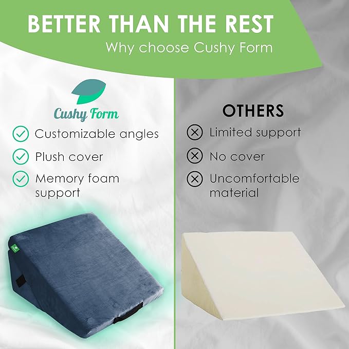Cushy Form Wedge Pillow for Sleeping - 22 Inch Memory Foam Bed Wedge for Sleeping, Reading, Post Surgery & Leg Elevation - Triangle Pillow with Washable Cover - Blue
