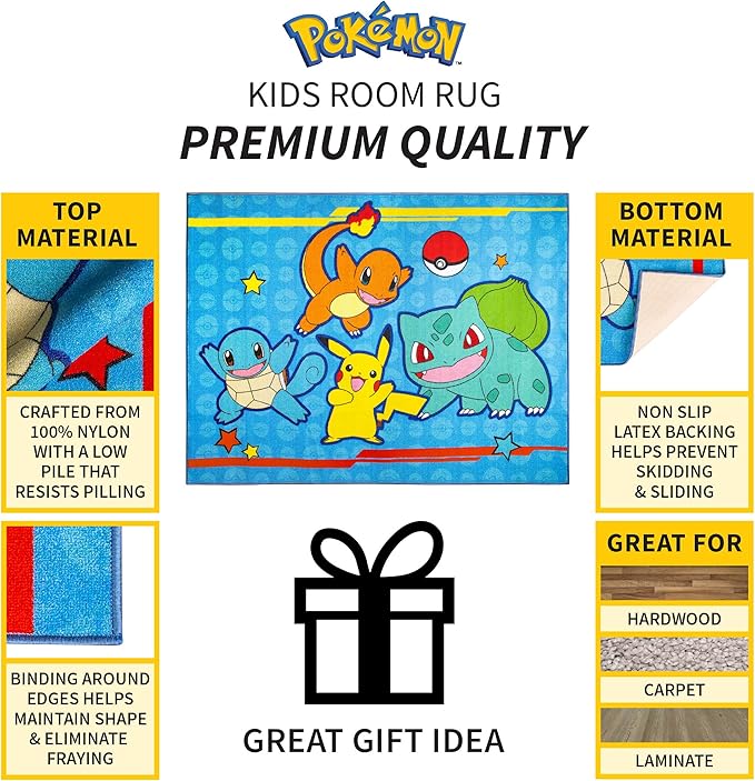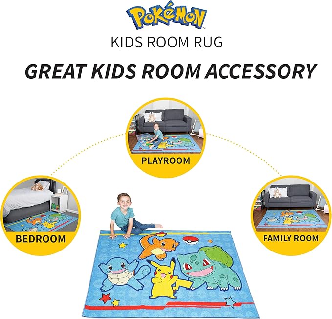Franco Kids Room Non Slip Area Rug, 69 in x 52 in, Pokemon