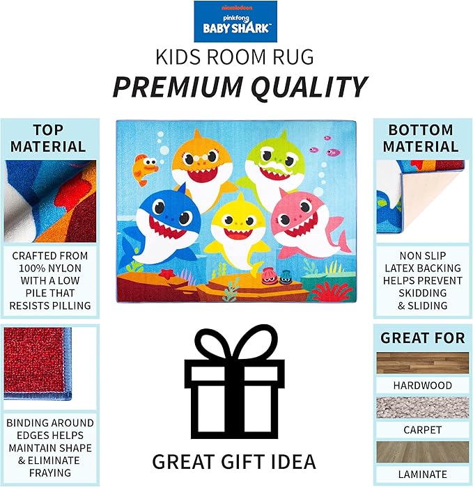 Franco Kids Room Non Slip Area Rug, 69 in x 52 in, Baby Shark