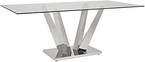 Uptown Club Glass Dining Table with Versatile Rectangular Designs, Tempered Surfaces, and Sturdy Bases for Modern Homes, Seats 4 to 8 People, Elegant Statement Piece, 40" x 78.5", Silver