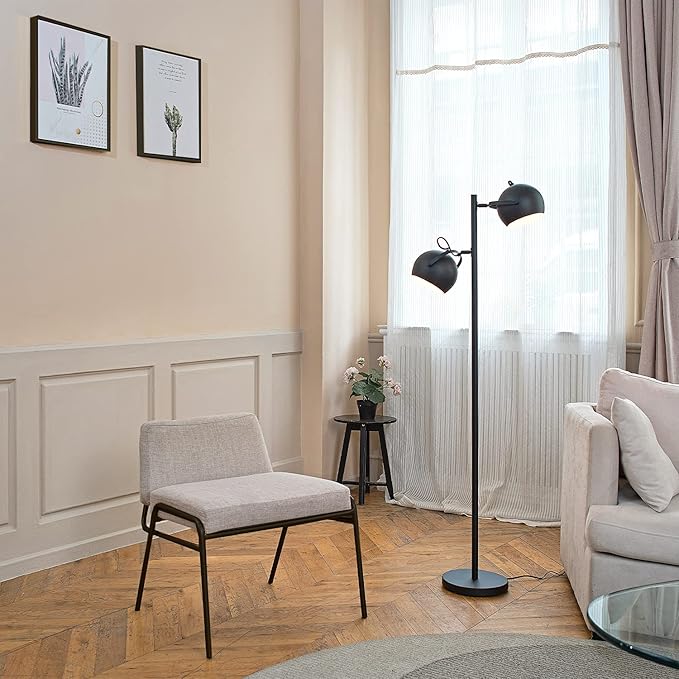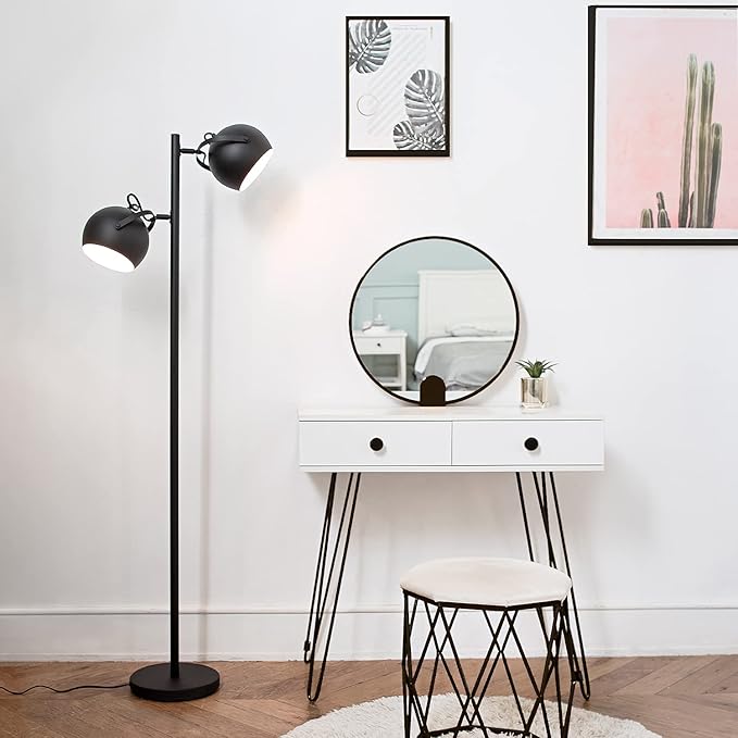Globe Electric 67518 61" 2-Light Floor, Matte, Adjustable Lamp Heads, in-Line On Off Foot Switch, Miles (Black)