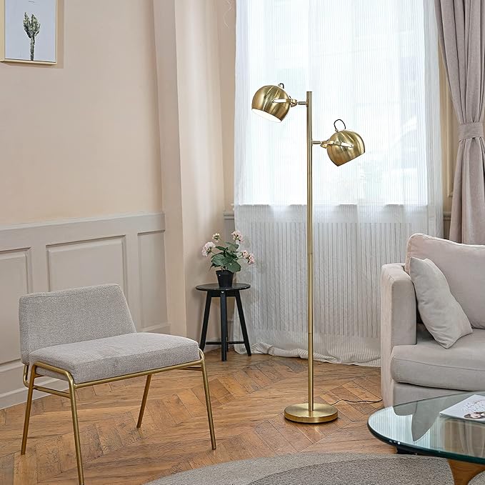 Globe Electric 67515 61" 2-Light Floor, Matte, Adjustable Lamp Heads, in-Line On Off Foot Switch, Miles (Brass)
