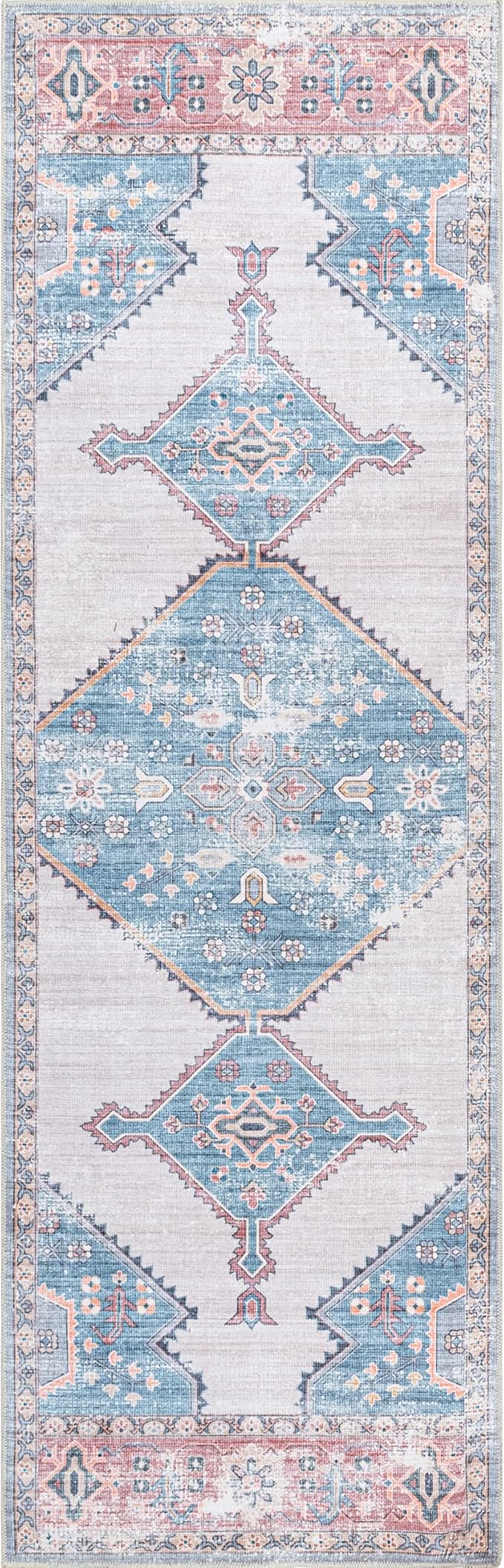 nuLOOM Olga Machine Washable Distressed Vintage Medallion Ultra Thin Runner Rug, 2' 6" x 8', Blue