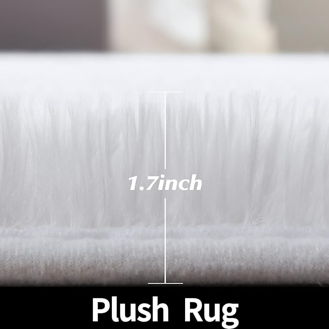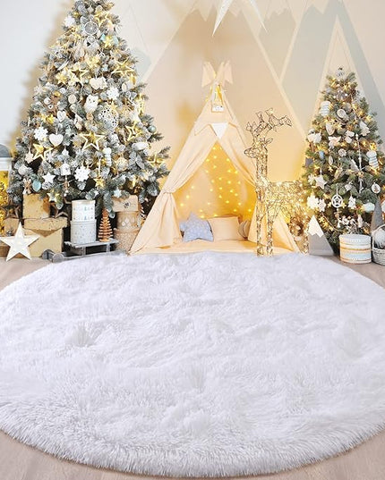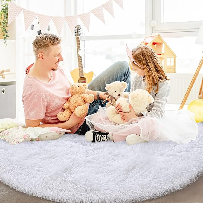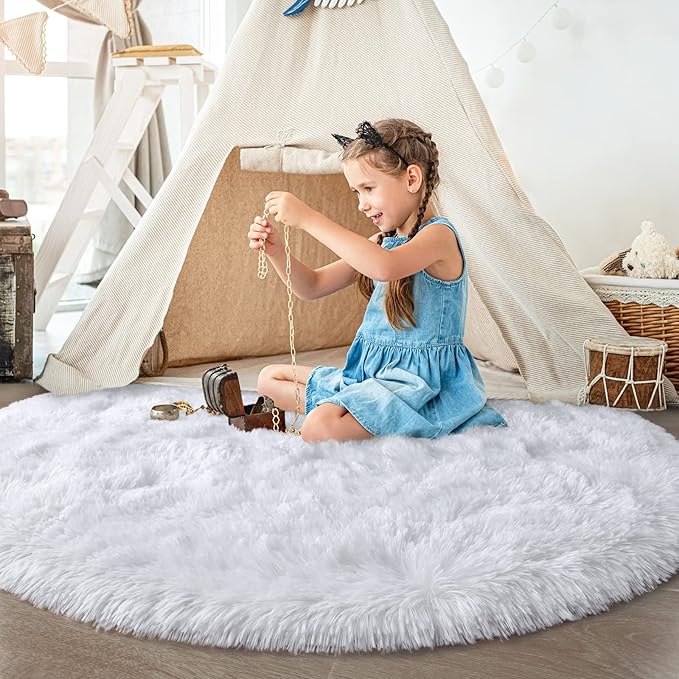 White Round Rug for Bedroom, Super Fluffy Circle Rugs for Baby Nursery, 4'X4' Feet Furry Carpet for Children Kids Room, Cute Soft Shaggy Rug for Girls Home Decor, Fuzzy Plush Carpets for Dorm