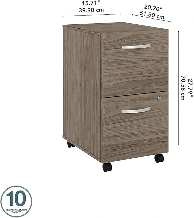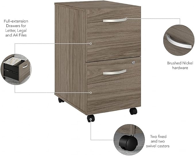Bush Furniture HYF116MHSU-Z Bush Business Furniture Hybrid 2-Drawer Mobile File Cabinet, Letter/Legal, Modern Hickory, 20-Inch