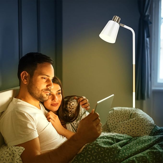 Floor Lamp, NIOSTA Industrial Floor Lamp 360°Rotation Lampshade Modern Sofa Side Standing Reading Lamp, Floor Lamps for Living Room, Office, Bedroom Reading, Work etc(White)
