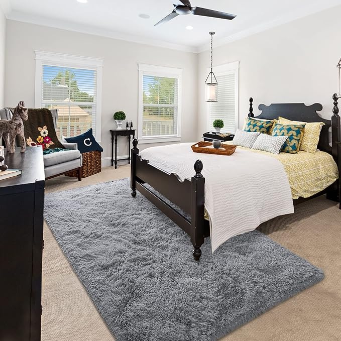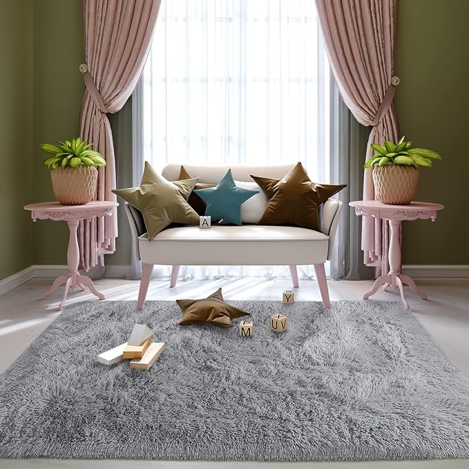 Super Soft Fluffy Shaggy Rugs 6x9 Feet for Living Room Bedroom, Fuzzy Plush Area Rugs for Girls Kids Room Nursery Home Decor, Furry Dorm Throw Rug Cute Non-Slip Indoor Floor Carpet, Grey