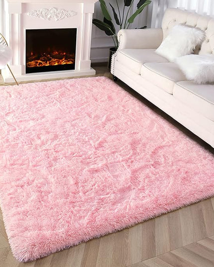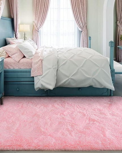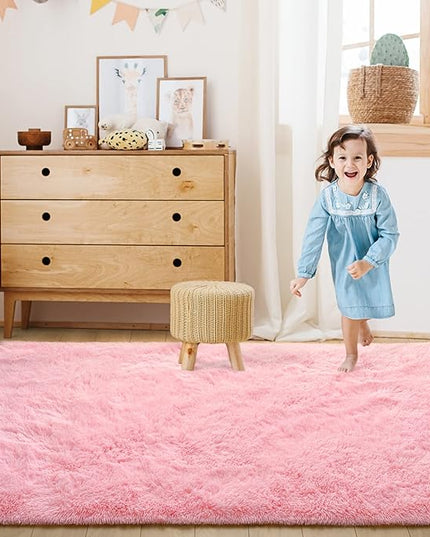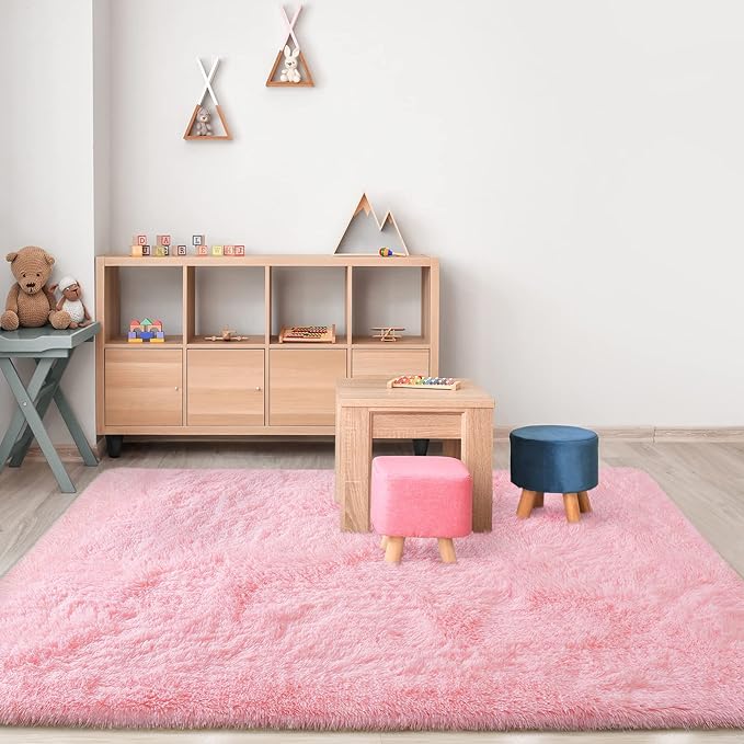 Super Soft Fluffy Shaggy Rugs 6x9 Feet for Living Room Bedroom, Fuzzy Plush Area Rugs for Girls Kids Room Nursery Home Decor, Furry Dorm Rug Cute Non-Slip Indoor Floor Carpet, Baby Pink
