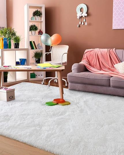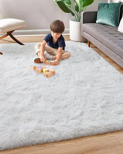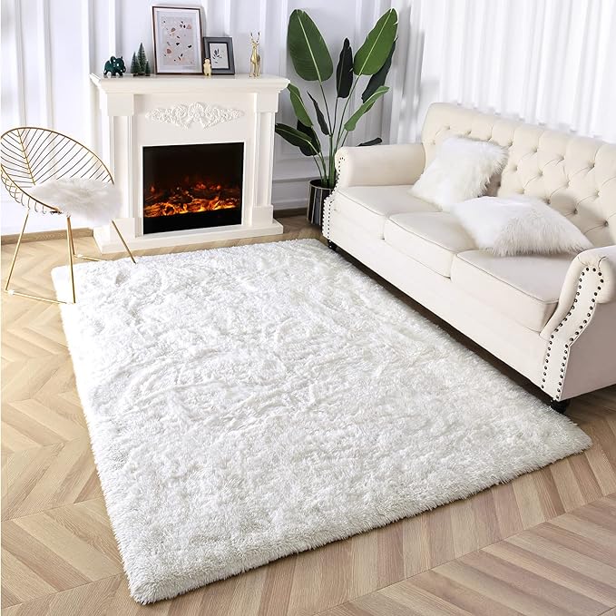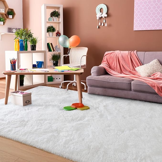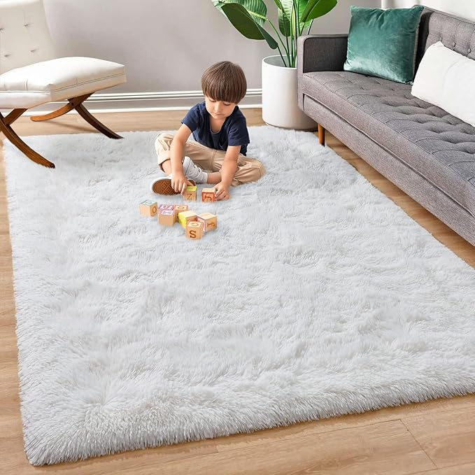 Super Soft Fluffy Shaggy Rugs 6x9 Feet for Living Room Bedroom, Fuzzy Plush Area Rugs for Girls Kids Room Nursery Home Decor, Furry Dorm Rug Cute Non-Slip Indoor Floor Carpet, Cream White