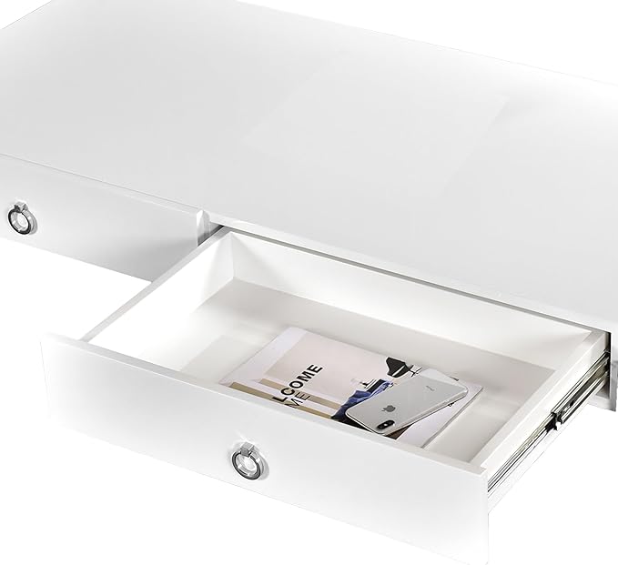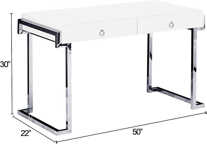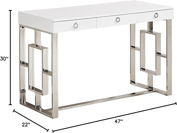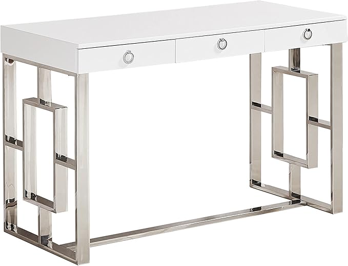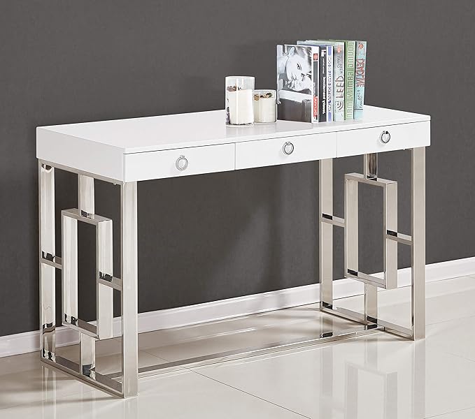 Best Master Furniture Brooke Mid-Century Modern Glossy Home Office Desk, Silver