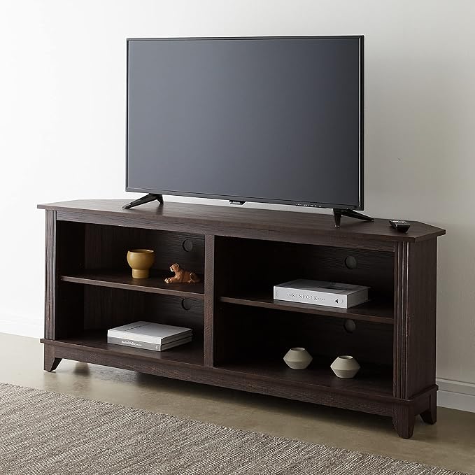 ROCKPOINT 58inch Corner TV Stand ,Home Living Room Storage Console, Entertainment Center, TV Console Table ,Espresso