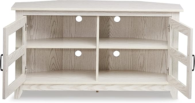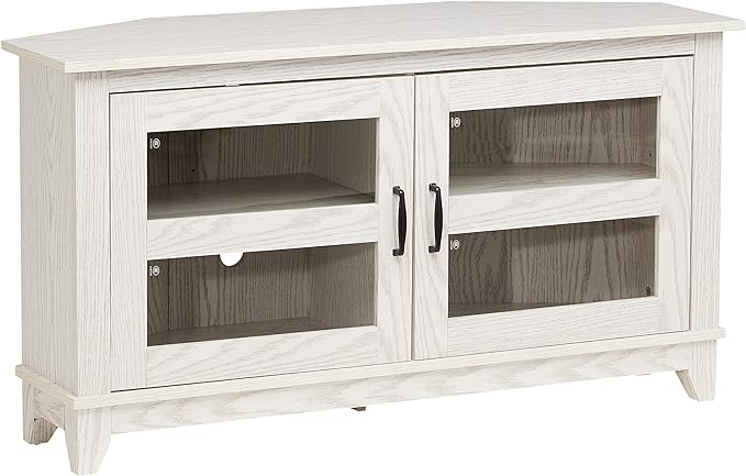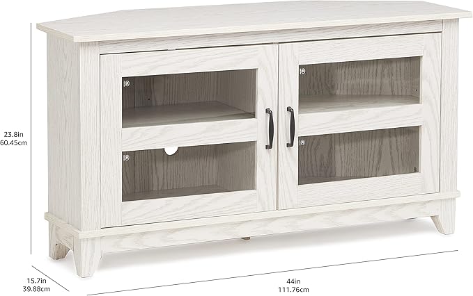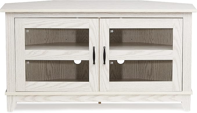 ROCKPOINT Modern Farmhouse 44inch Corner Universal TV Stand Living Room Storage Console, Entertainment Center,White