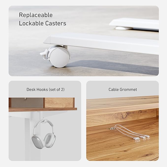 FEZIBO Sturdy Height Adjustable Electric Standing Desk with Drawers, 55 x 24 Inch Stand Up Table with Large Storage Shelf, Sit Stand Desk, Light Rustic Brown Top