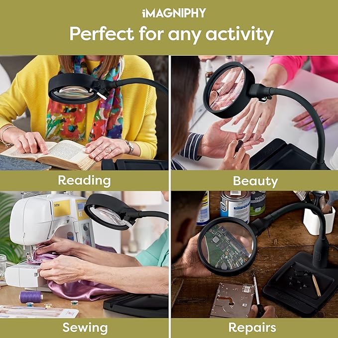 About This Oversized Lens with 8x Magnification - See better, do more with iMagniphy Desk Magnifying Glass with Light and...