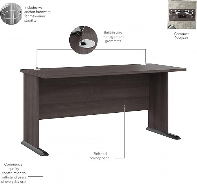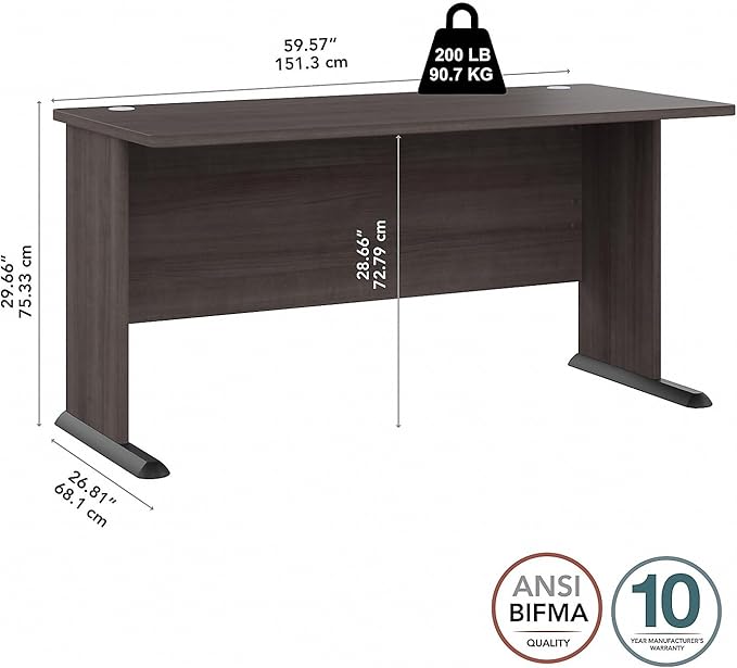 Bush Business Furniture Studio A Computer Desk, Commercial-Grade Gaming and Work Table for Home or Professional Office, 60W, Storm Gray