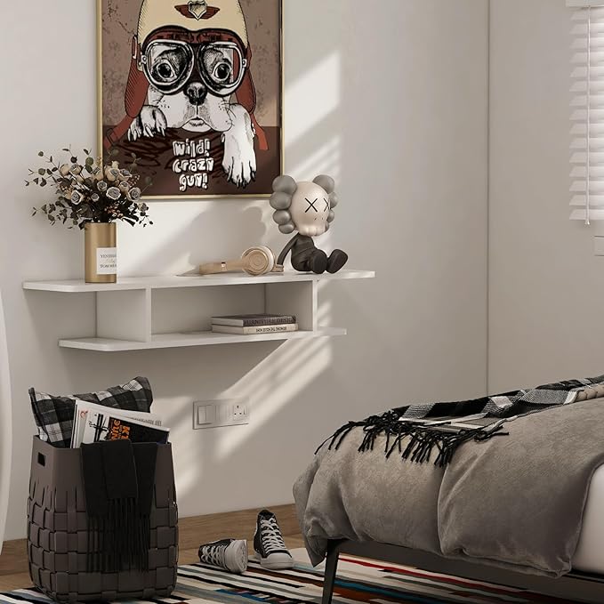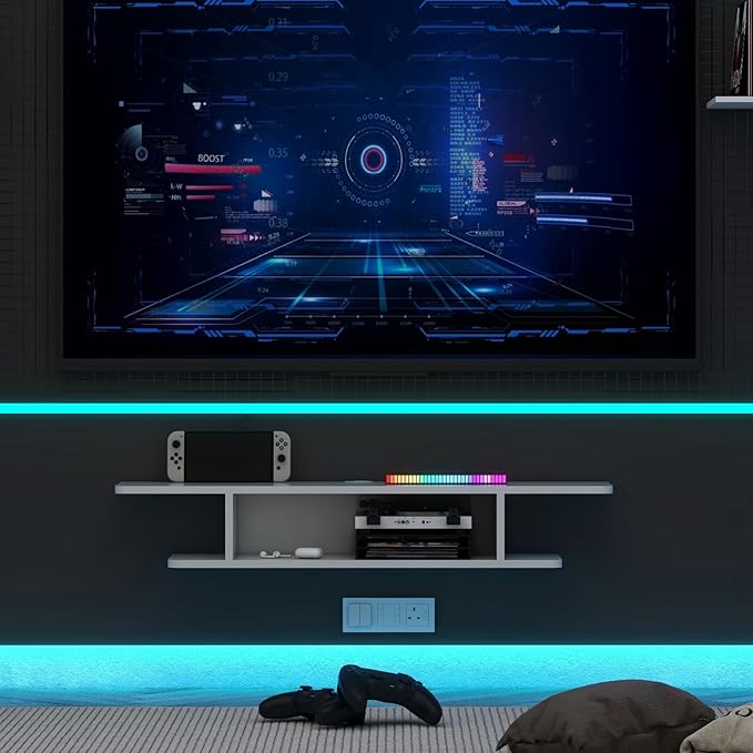 Floating TV Stand, Wall Mounted Entertainment Center and Cabinet Shelf, TV Console with Storage, Media Console for DVD Player, Space-Saving Under TV Shelf for Bedroom, Living Room (White)