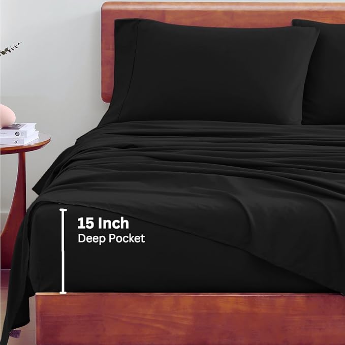 Lane Linen King Size Bedding Sets - 4Pc 100% Organic Cotton Sheets King Size, Percale Sheets, Breathable Bedding Sheets & Pillowcases, Luxury Hotel Sheets,15" Deep Pocket King Sheet Set - Black Sheets