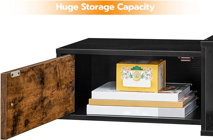 HOOBRO Floating TV Stand with Power Outlet 55", Modern Wall Mounted Media Console Shelf Cabinet for Under TV Storage, Entertainment Center, Living Room, Bedroom, Rustic Brown and Black BF11DS01
