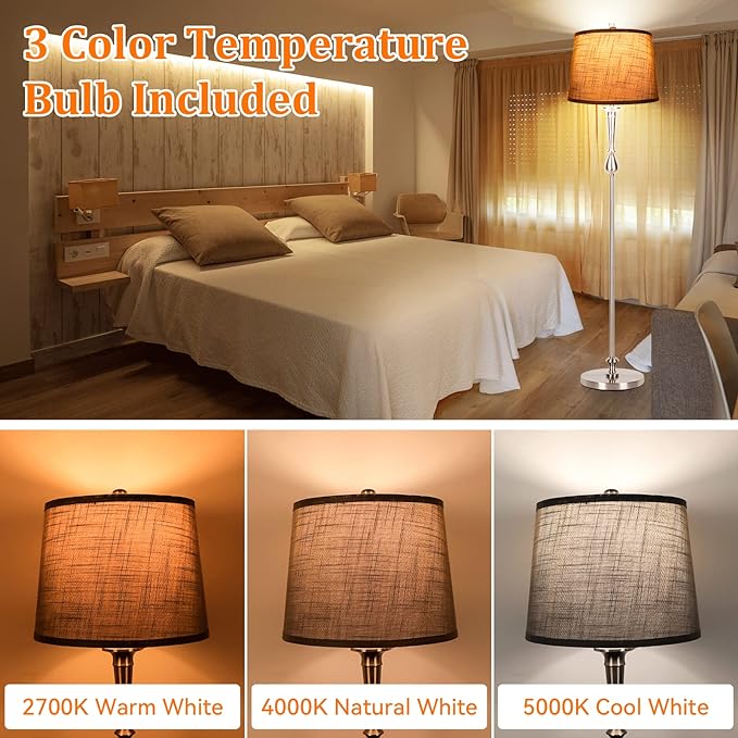 About This 【Floor Lamp with 3 Color Temperatures】The LED Floor Lamp comes with a 9W LED light bulb, it has...