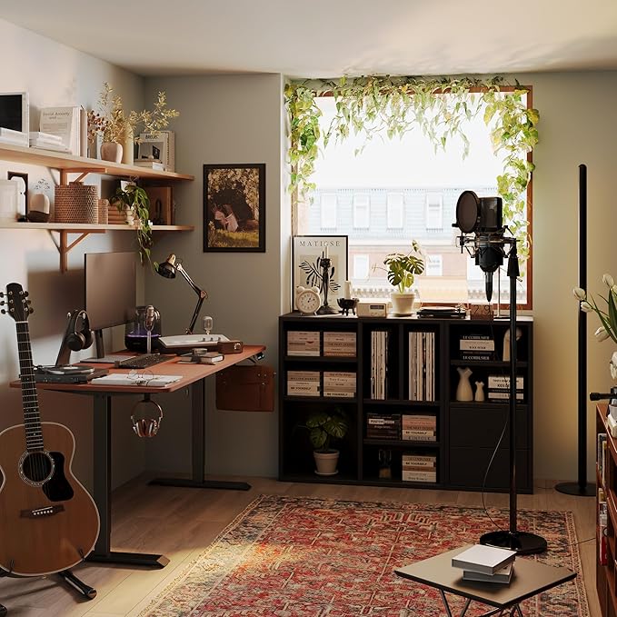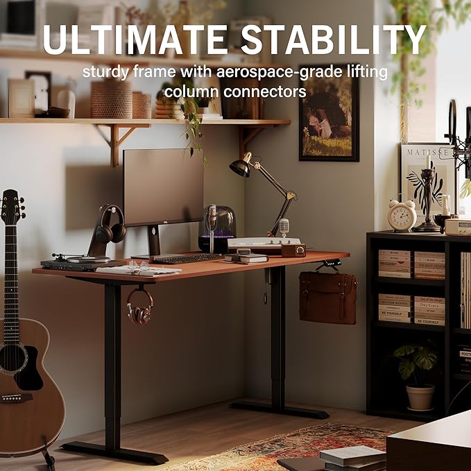 Monomi Electric Standing Desk, 55x28 Inches Adjustable Height Desk, Home Office Sit Stand Up Desk (Black Frame/Cherry Top)