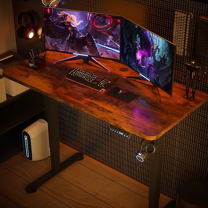 Monomi Electric Height Adjustable Standing Desk, 48x24 Inches, Ergonomic Home Office Sit/ Stand Up Desk (Black Steel Frame/Rustic Brown Top)