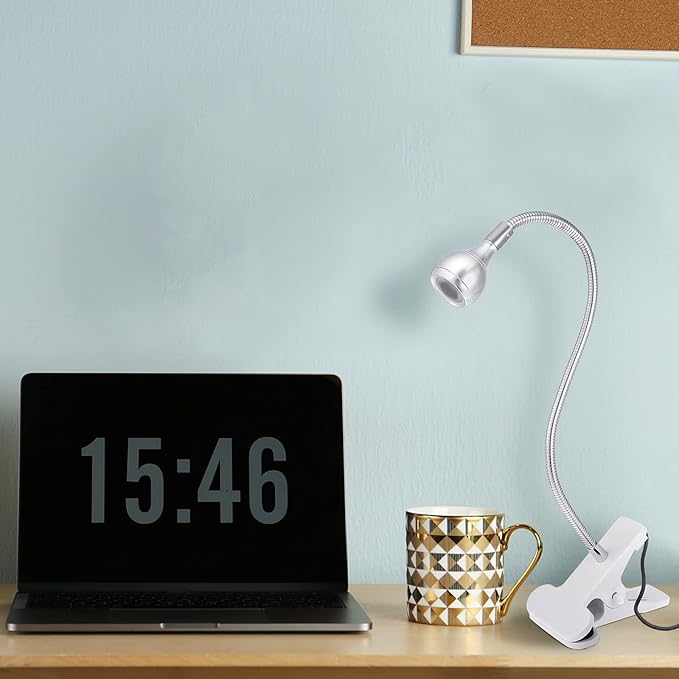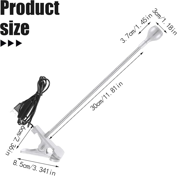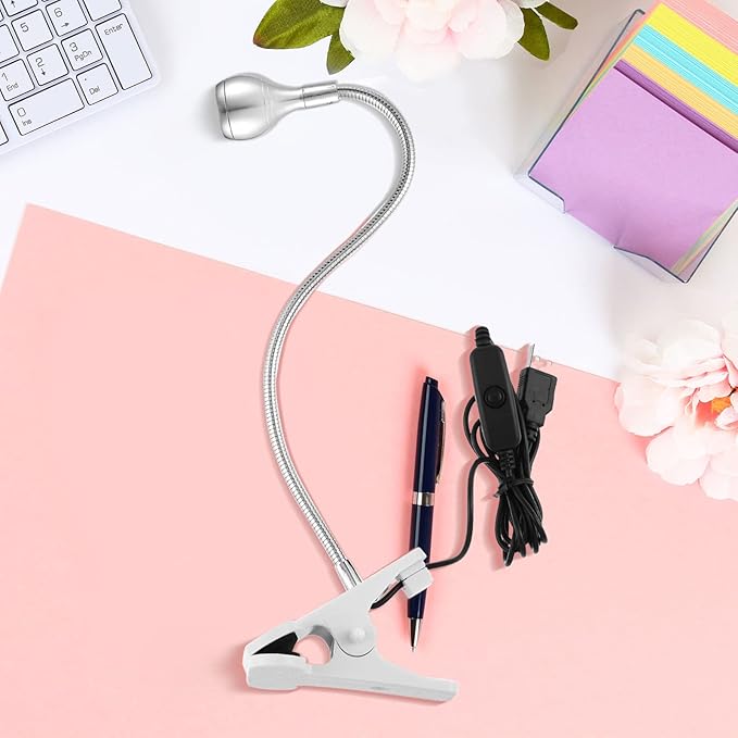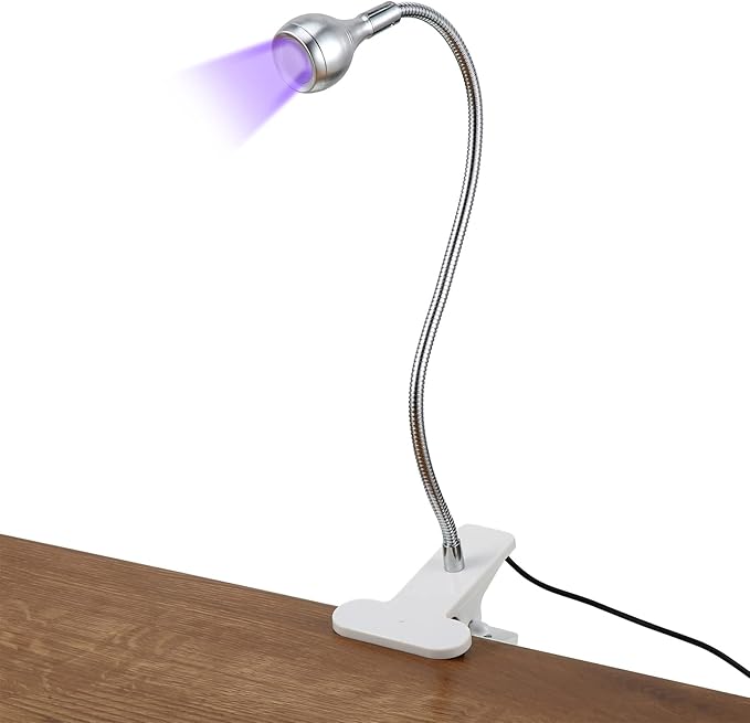 Big Chip 395nm UV LED Light Fixtures with Gooseneck and Clamp Mini Desk Light Clamp Portable Gooseneck for Outdoor Stall Gel Nail Curing, 5V USB Input(Silver,1 Piece)