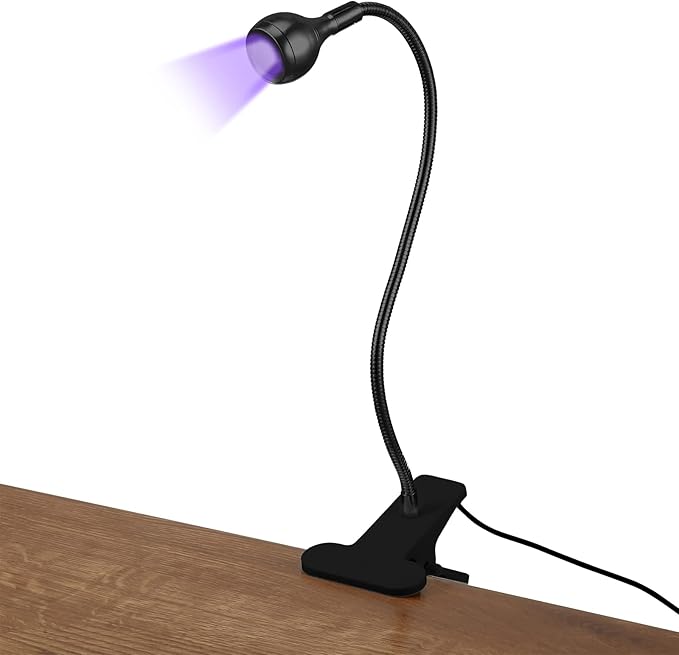 Big Chip 395nm UV LED Light Fixtures with Gooseneck and Clamp Mini Desk Light Clamp Portable Gooseneck for Outdoor Stall Gel Nail Curing, 5V USB Input(Black,1 Piece)