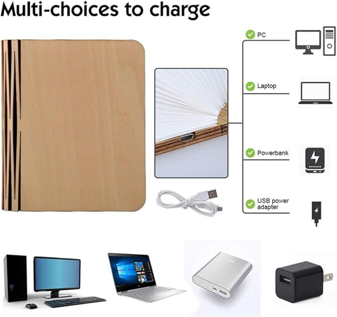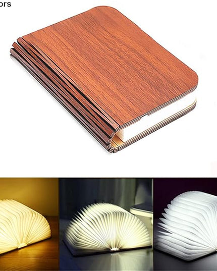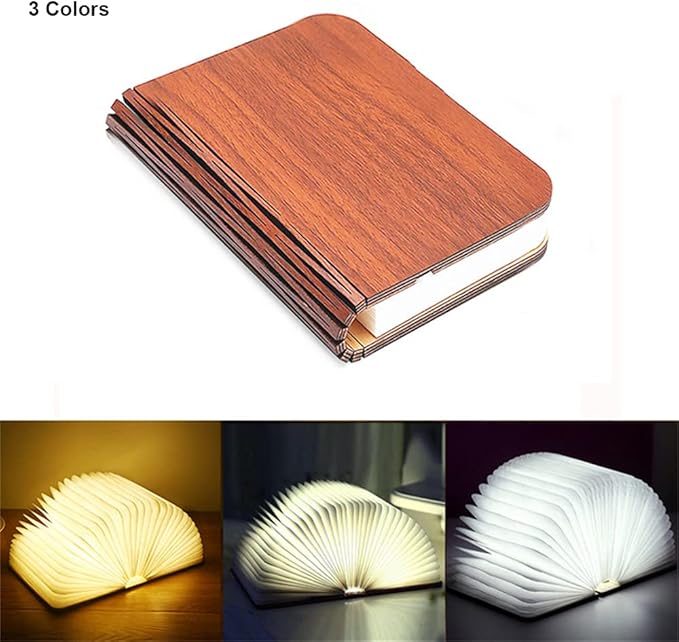 Folding Book Lamp Novelty Wooden Table Lamp Portable Desk Light LED Paper Lantern with USB Rechargeable for Gift Home Office Decor