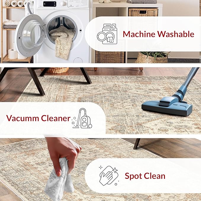 About This Stain-Resistant Material: Our machine washable rug is crafted from 100% Polyester that is stain-resistant, lightweight, and easy to...