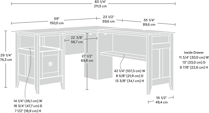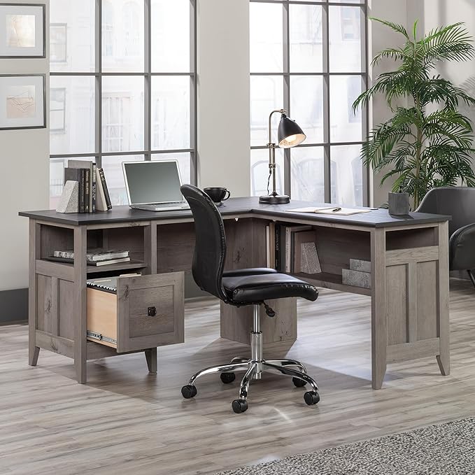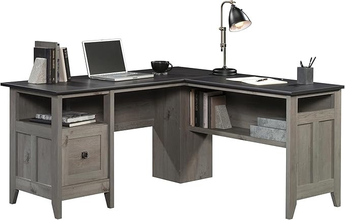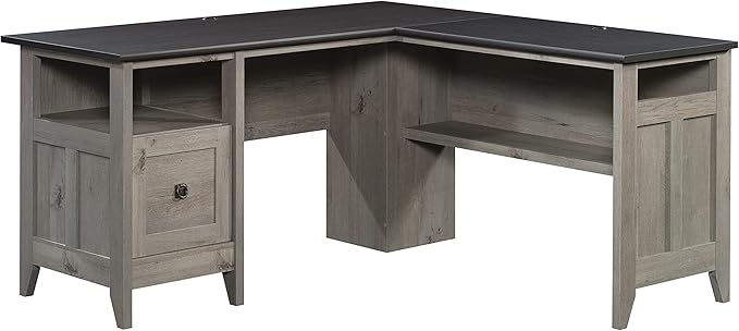 Sauder August Hill L-Shaped Home Office Desk, L: 59.06" x W: 58.74" x H: 29.25", Mystic Oak finish