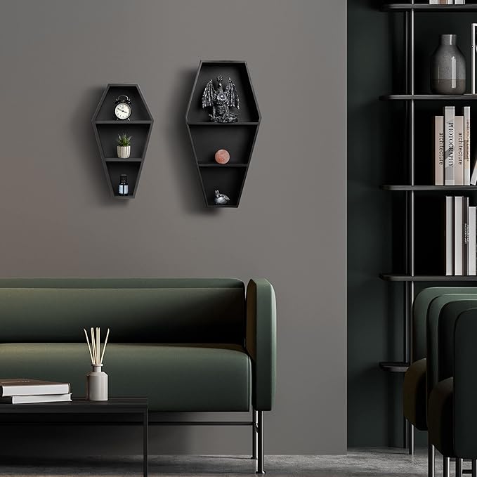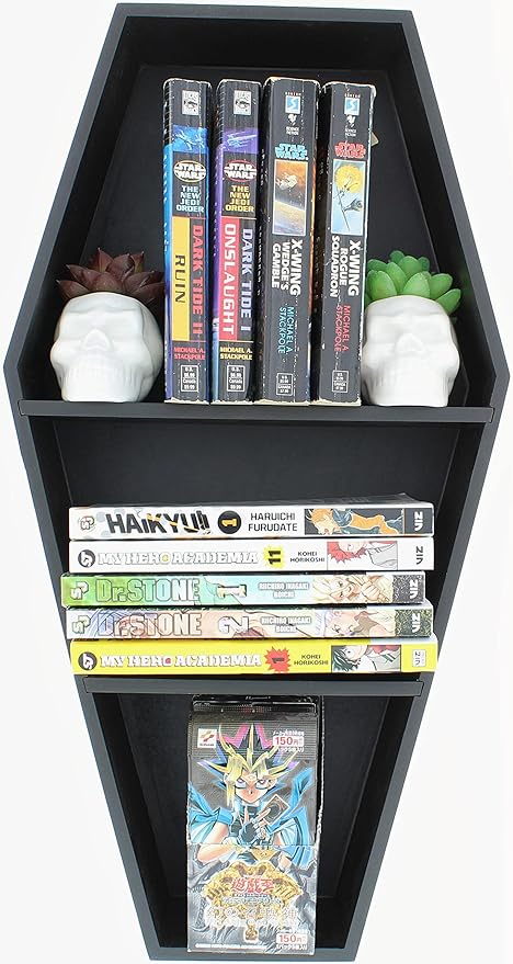 MANNY'S MYSTERIOUS ODDITIES Coffin Bookshelf - Includes Removable Shelves - Small and Large Coffin Shelf 20 Inch and 14 Inch - Gothic Decor for Home
