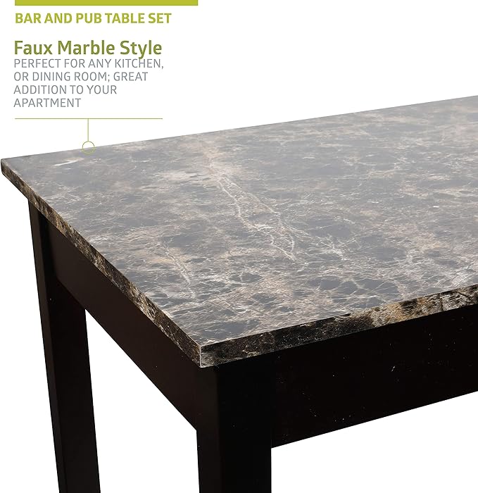 Pearington Remington High Top Counter Height Bar and Pub Table Set with 2 Chairs, Brown