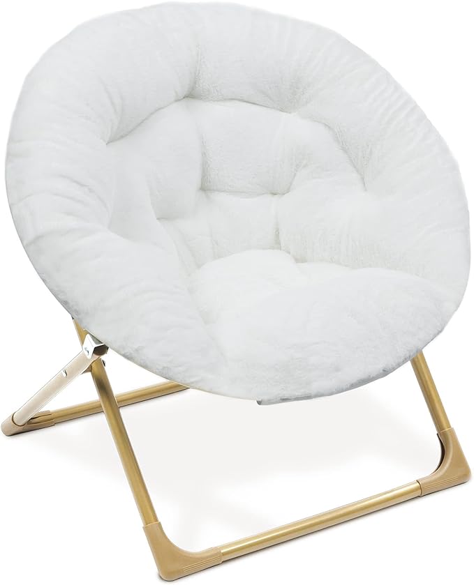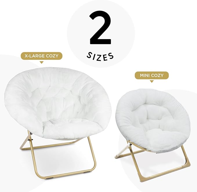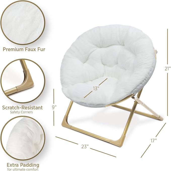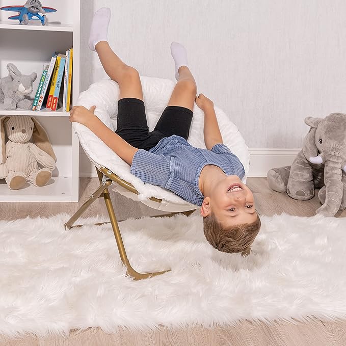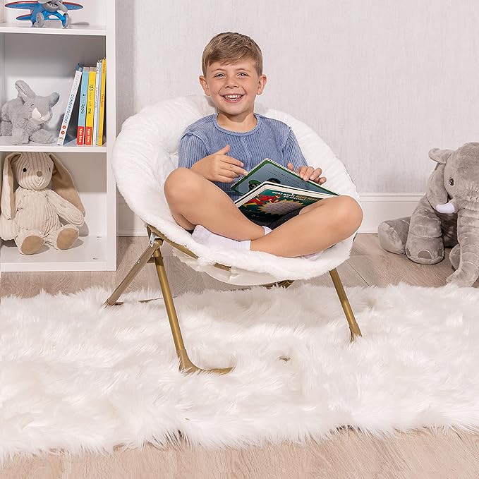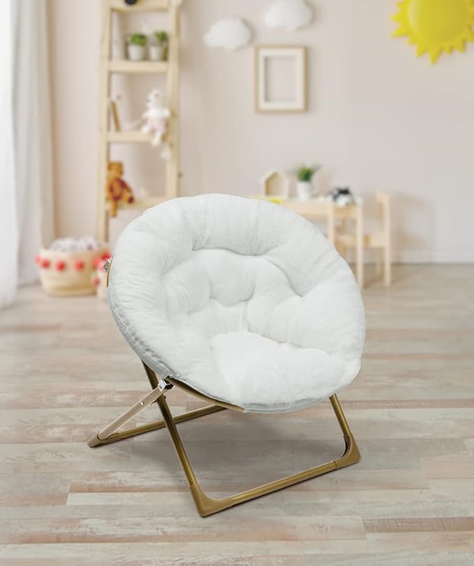 Milliard Mini Cozy Chair for Kids, Sensory Faux Fur Folding Saucer Chair for Toddlers, White